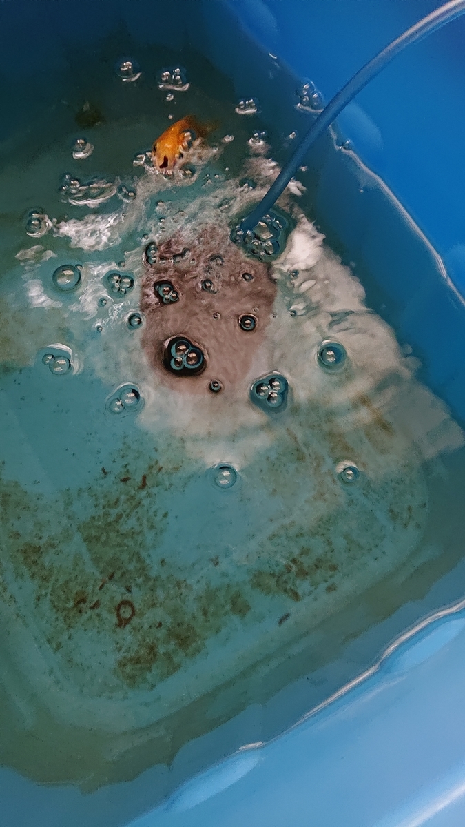 7/7 一時預け先の実家より帰郷してから27日目、金魚部屋のトリちゃんずプラ舟30型の掃除 & 水換えを行いました✨